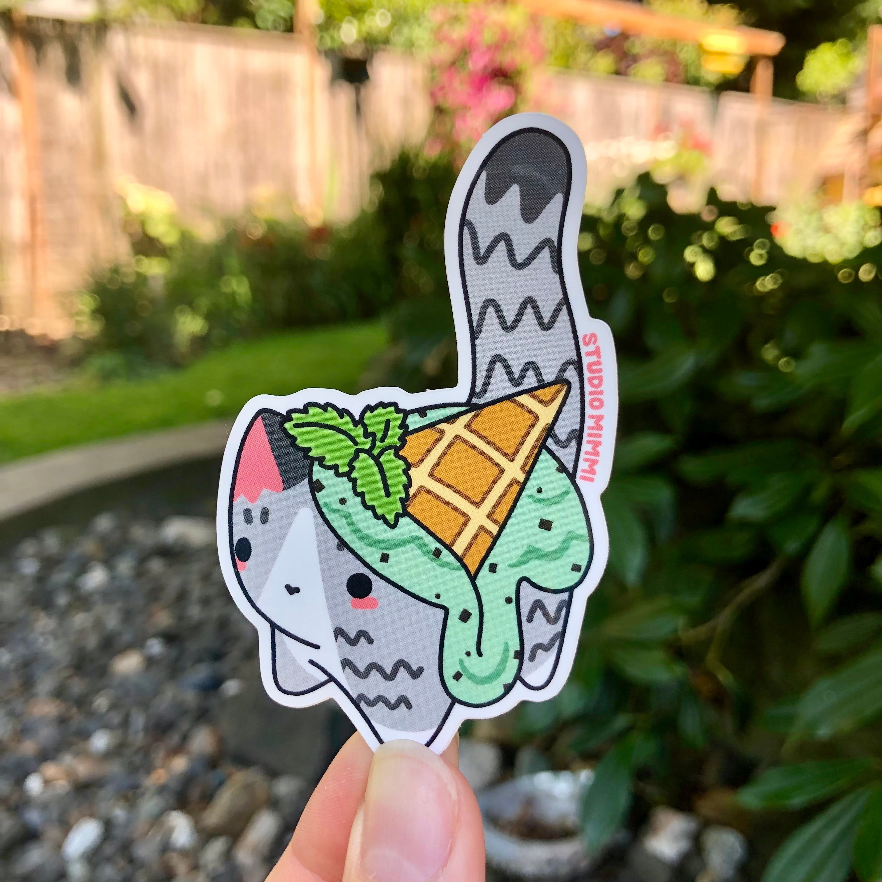 Here’s the scoop! This adorable cutie is designed after Studio Mimmi’s classic Ice Cream Cat, now available in a new flavor: catnip mint choco chip!