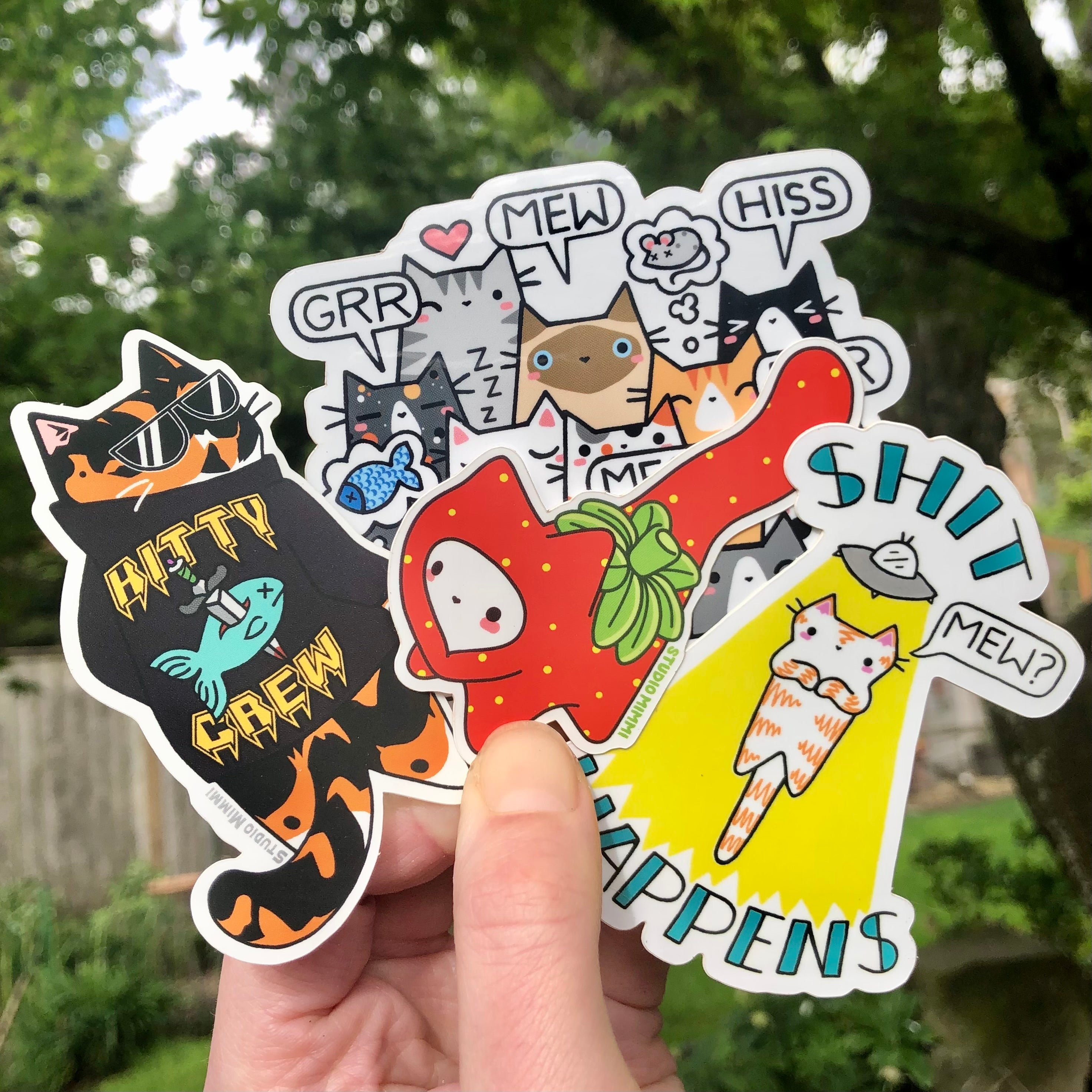 Get all the classics!! These are all on my first stickers. Get a Kitty Crew, Strawberry Cat, Shit Happens and Cat Crazy.